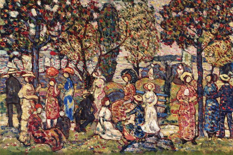 Maurice Brazil Prendergast (St. John's, 10 de octubre de 1858 - Nueva York, 1 de febrero de 1924) fue un pintor postimpresionista estadounidense, que usaba sobre todo acuarela. Al contrario que los impresionistas, su obra es algo más que luz y color. Fue miembro de The Eight. Maurice Brazil Prendergast nació en St. John's. En el año 1868 la familia se marchó a Boston, donde el joven Maurice fue aprendiz de un artista comercial, haciendo carteles. Las estructuras brillantemente coloreadas de los panfletos publicitarios ejercieron una profunda influencia en su estilo, caracterizando incluso sus obras de madurez. Para estudiar arte, en los años 1880 se marchó a París, donde encontró a algunos artistas ingleses de vanguardia como Walter Sickert y Aubrey Beardsley. Conoció el estilo de James Abbott McNeill Whistler, de los impresionistas y de los puntillistas. Pero fueron sobre todo las influencias de Édouard Vuillard y de Pierre Bonnard las que acercaron su estilo hacia el postimpresionismo, en el que amplias formas radicalmente simplificadas, coloreadas de modo luminoso y vigoroso, se disponían de manera casi rítmica sobre la tela. Varios críticos de arte describieron sus obras como parecidas a las tapicerías y mosaicos. En 1898 Prendergast viajó a Venecia, donde admiró las deliciosas escenas de género de Vittore Carpaccio, que lo animaron hacia disposiciones aún más complejas y rítmicas. Se convirtió en uno de los primeros pintores estadounidenses que se inspiraron en la labor de Paul Cézanne, en relación con el uso expresivo de la forma y del color. Aunque trabajó principalmente con las acuarelas, en su madurez se orientó hacia obras al óleo que partían de esbozos hechos con acuarela.