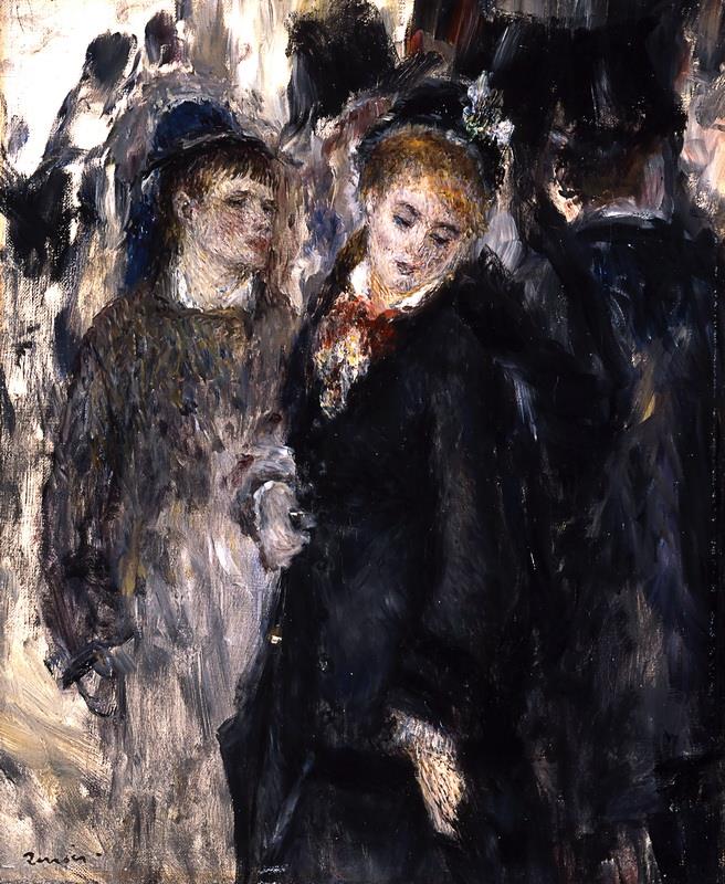 Pierre Auguste Renoir (25 de febrero de 1841 - 3 de diciembre de 1919), es uno de los más célebres pintores franceses. No es fácil clasificarlo: perteneció a la escuela impresionista, pero se separó de ella por su interés por la pintura de cuerpos femeninos en paisajes, inspirados a menudo en pinturas clásicas renacentistas y barrocas. El Impresionismo es un movimiento pictórico que surge en Francia a finales del siglo XIX, en contra de las fórmulas artísticas impuestas por la Academia Francesa de Bellas Artes, institución que fijaba los modelos a seguir y patrocinaba las exposiciones oficiales en el Salón parisino. El objetivo de los impresionistas era conseguir una representación del mundo espontánea y directa, en pinturas creadas "in situ", no elaboradas en el taller tal y como se estilaba hasta entonces. En parte por la necesidad de abreviar la ejecución, se recurre a una pincelada rápida y suelta, y a formatos manejables frente a los formatos monumentales típicos de la pintura académica. Renoir ofrece una interpretación más sensual del impresionismo, más inclinada a lo ornamental y a la belleza. No suele incidir en lo más áspero de la vida moderna, como a veces hicieron Manet o Van Gogh. Mantuvo siempre un pie en la tradición; se puso en relación con los pintores del siglo XVIII que mostraban la sociedad galante del Rococó, como Watteau. En sus creaciones muestra la alegría de vivir, incluso cuando los protagonistas son trabajadores. Siempre son personajes que se divierten, en una naturaleza agradable. Se le puede emparentar por ello con Henri Matisse, a pesar de sus estilos distintos. Trató temas de flores, escenas dulces de niños y mujeres y sobre todo el desnudo femenino, que recuerda a Rubens por las formas gruesas. En cuanto a su estilo y técnica se nota en él un fuerte influjo de Corot. Renoir posee una vibrante y luminosa paleta que hace de él un impresionista muy especial. "El palco", "El columpio", "El Moulin de la Galette", "Le dèjeuner des canotiers", "Bañistas", son sus obras más representativas.