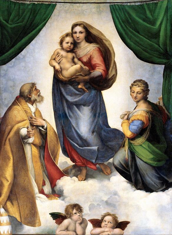 Raffaello Sanzio (Urbino, 6 de abril de 1483 – Roma, 7 de abril de 15201 ), también conocido como Rafael de Urbino o, simplemente, como Rafael fue un pintor y arquitecto italiano del Alto Renacimiento. Además de su labor pictórica, que sería admirada e imitada durante siglos, realizó importantes aportes en la arquitectura y, como inspector de antigüedades, se interesó en el estudio y conservación de los vestigios grecorromanos. Hijo de un pintor de modesta relevancia, fue considerado un niño prodigio por su precoz habilidad y al quedar huérfano se formó en los talleres de varios artistas de prestigio. A los 25 años obtuvo su primer encargo oficial, la decoración de las Estancias Vaticanas, donde pintó algunos frescos como La escuela de Atenas, considerado una de sus obras cumbre. Es célebre por la perfección y gracia de sus artes visuales, destacando en trabajos de pintura y dibujo artístico. Junto con Miguel Ángel y Leonardo da Vinci forma el trío de los grandes maestros del período. Nació en Viernes Santo y falleció en esta misma festividad el día que cumplió 37 años. Fue un artista muy productivo, en parte gracias a que dirigió un taller conformado por numerosos colaboradores y, a pesar de su muerte prematura, dejó una extensa obra que en gran parte aún se conserva. La mayor parte de su trabajo está alojado en los Museos Vaticanos, ya que decoró con frescos las habitaciones conocidas como las Estancias de Rafael, el principal encargo de su carrera, que quedó sin terminar a causa de su muerte y fue completado por ayudantes. Después de sus años de juventud en Roma, gran parte de su obra, a pesar de haber sido diseñada por él, fue ejecutada por su taller, con una considerable pérdida de calidad. Ejerció gran influencia en su época; aunque fuera de Roma su obra fue conocida sobre todo a través de la producción que hicieron los talleres de grabado que colaboraban con él. Después de su muerte, la influencia de su principal rival, Miguel Ángel, se intensificó hasta los siglos XVIII y XIX, cuando las cualidades más serenas y armoniosas de Rafael, fueron consideradas de nuevo como un modelo superior. Su carrera se dividió de manera natural en tres fases y tres estilos, descritos así por Giorgio Vasari: sus primeros años en Umbría, el periodo posterior de cuatro años en Florencia (1504-1508), donde absorbió las tradiciones artísticas de la ciudad, y finalmente su último y triunfal período de doce años en Roma, trabajando para los papas y su corte.