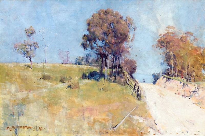 Sir Arthur Ernest Streeton (8 abril 1867-1 septiembre 1943) fue un pintor australiano, paisajista y miembro destacado de la Escuela de Heidelberg , también conocida como el impresionismo de Australia . Streeton nació en Mount Duneed , cerca de Geelong , y su familia se trasladó a Richmond en 1874. Sus padres se habían conocido en el viaje desde Inglaterra en 1854. En 1882, Streeton comenzó estudios de arte con GF Folingsby en la Galería de la Escuela Nacional . Streeton fue influenciado por el impresionismo francés y las obras de Turner . Durante este tiempo él comenzó su asociación con otros artistas: Frederick McCubbin y Tom Roberts - en Melbourne Box Hill y Heidelberg . En 1885 Streeton presentó su primera exposición en la Academia de Arte de Victorian. Encontró empleo como aprendiz litógrafo bajo Charles Troedel .