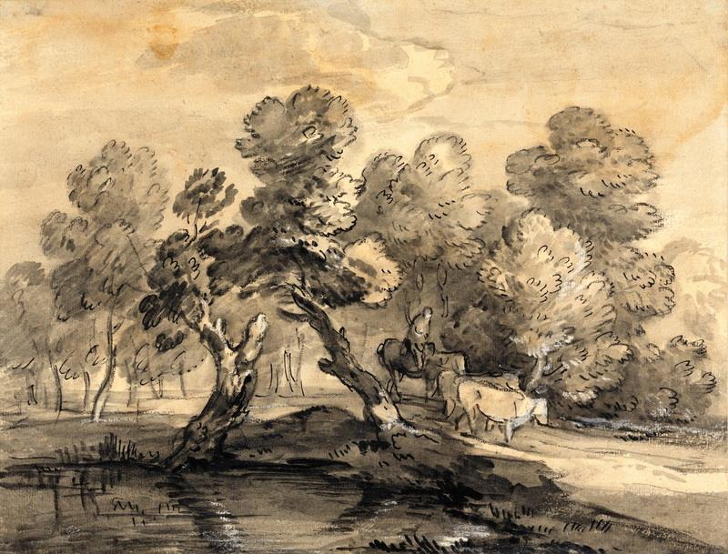 Thomas Gainsborough (Sudbury, bautizado el 14 de mayo de 1727 - Londres, 2 de agosto de 1788) fue un pintor de paisajes y retratista inglés. considerado como uno de los grandes maestros del retrato y del paisaje. Fue el hijo menor de John Gainsborough, un tejedor en Suffolk, y, en 1740, dejó su hogar para estudiar arte en Londres con Hubert Gravelot, Francis Hayman y William Hogarth. En 1746, se casó con Margaret Burr, y la pareja tuvo dos hijas. Se trasladó a Bath en 1759 donde tuvo la protección de la sociedad a la moda, y comenzó a exponer en Londres. En 1769, se convirtió en miembro fundador de la Royal Academy, pero su relación con la organización fue espinosa y a veces retiró su trabajo de la exposición. Gainsborough se mudó a Londres en 1774, y pintó retratos del Rey y de la Reina, pero el Rey se vio obligado a nombrar como pintor real al rival de Gainsborough, Joshua Reynolds. En sus últimos daños, Gainsborough pintó paisajes relativamente sencillos y se le atribuye (con Richard Wilson) como el creador de la escuela paisajista británica del siglo XVIII. Gainsborough murió de cáncer en el año 1788 y está enterrado en la iglesia de St. Anne, Kew, Surrey. Pintó con rapidez y sus últimas pinturas se caracterizan por una paleta ligera y pinceladas fáciles. Prefería el paisaje al retrato.