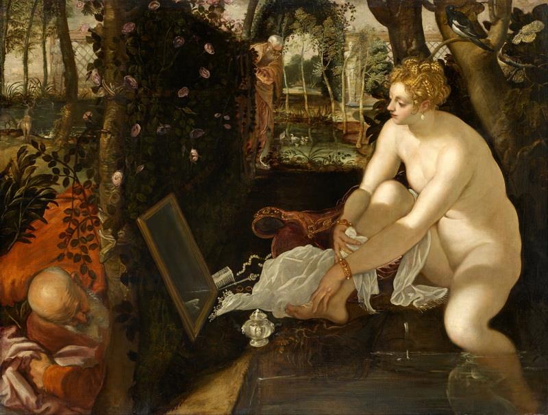Tintoretto, de nombre verdadero Jacopo Comin (Venecia, 29 de septiembre de 1518 - Venecia, 31 de mayo de 1594), fue uno de los grandes pintores de la escuela veneciana y probablemente el último gran pintor del Renacimiento italiano. En su juventud también recibió el apodo de Jacopo Robusti, pues su padre defendió las puertas de Padua frente a las tropas imperiales de una manera bastante vigorosa. Su verdadero apellido, 'Comin' ha sido descubierto recientemente por Miguel Falomir, jefe del departamento de Pintura Italiana del Museo del Prado, Madrid, y se ha hecho público a raíz de la retrospectiva de Tintoretto en el Prado (2007). Por su fenomenal energía y ahínco a la hora de pintar fue apodado Il Furioso, y su dramático uso de la perspectiva y los especiales efectos de luz hacen de él un precursor del arte barroco. Sus trabajos más famosos son una serie de pinturas sobre la vida de Jesús y la Virgen María en la Scuola Grande di San Rocco de Venecia. Su estilo inicialmente siguió a Tiziano. Evolucionó a partir de 1540, siendo de tendencia manierista más marcada que los otros dos grandes pintores de la escuela veneciana, Tiziano y Veronés. Es un pintor que pinta con pasión, alcanzando en su plenitud su característica audacia, el dinamismo incansable de su composición, su uso dramático de la luz y sus enfáticos efectos de perspectiva, que hacen que parezca un artista barroco adelantado a su tiempo. De su admirado Miguel Ángel toma las anatomías y las posturas difíciles, siendo este enérgico modelado del cuerpo una novedad en Venecia. Sus efectos de perspectiva son enfáticas. Pero lo inserta en un marco muy característico de la escuela veneciana: el color, el paisaje y la luz. Esta última cobra singular relevancia en sus últimas obras, usándola de forma dramática. Tuvo enorme capacidad de trabajo. Ejecutaba una obra tras otra con rapidez, pues acaparaba numerosos encargos. Esta prolífica producción, de más de 300 obras, se explica, además, por la existencia de un taller. Se decía que había acabado en dos meses dos pinturas históricas cada una conteniendo veinte figuras, de las cuales siete eran retratos. Sebastiano del Piombo señaló que Tintoretto podía pintar en dos días tanto como él en dos años; Annibale Carracci que Tintoretto fue, en muchas de sus obras, semejante a Tiziano, en otras inferior a Tintoretto. Esta era la opnión generalizada que de él tenían los venecianos, que sostenían que Tintoretto tenía tres pinceles: uno de oro, el segundo de plata y el tercero de hierro. Cultivó lo mismo el lienzo que el fresco. Los temas tratados fueron sobre todo religiosos, tanto bíblicos como evangélicos. Trata temas religiosos de iconografía insolita, como La muerte de Abel o La piscina probática. Pero, además, realizó numerosos retratos de magistrados, funcionarios y hombres de letras. Su mérito es desigual, aunque los verdaderamente buenos difícilmente tienen parangón por su gran agudeza psicológica. Tintoretto tuvo pocos alumnos. En su taller trabajaron sus hijos, Marietta y Domenico, así como Paolo Fiammingo, Ludovico Pozzoserrato, Martin de Vos de Amberes y Aliense. Además, influyó en El Greco, quien debió de conocer su obra durante su estancia en Venecia. Fue descubierto como gran maestro en el siglo XX.