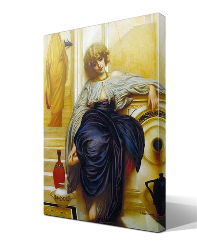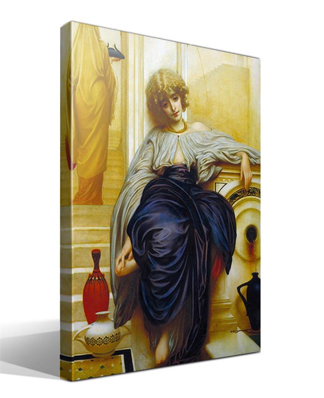 Frederic Leighton, primer Barón Leighton (3 de diciembre de 1830–25 de enero de 1896) fue un pintor y escultor inglés. Sus trabajos se centraban en materia histórica, bíblica y clásica. Fue además Baron, Caballero Bachelor, Presidente de la Royal Academy. Leighton nació en Scarborough en una familia dedicada a los negocios de importación y exportación. Estudió en la University College School, Londres. Recibió su educación artística en el continente europeo, primero de la mano de Eduard Von Steinle y después de Giovanni Costa. A la edad de 24 años, viajó a Florencia, donde asistió a la Academia de Florencia y pintó la procesión de la madonna de Cimabue a través de Borgo Allegri. Vivió en París desde 1855 a 1859, allí conoció a Ingres, Delacroix, Corot y Millet. En 1860, se trasladó a Londres, donde se asoció a los Prerrafaelitas. Diseñó la tumba de Elizabeth Barrett Browning por encargo de Robert Browning para el English Cemetery de Florencia en 1861. En 1864 se convirtió en socio de la Royal Academy y en 1878 pasó a ser su presidente (1878–96). La escultura que realizó en 1877, Atleta luchando con una Pitón, fue considerada en su momento el renacimiento de la escultura británica contemporánea, consagrándose como el origen y mayor exponente del movimiento de la New Sculpture. Sus cuadros representaron a Inglaterra en la Exposición Universal de París (1900).