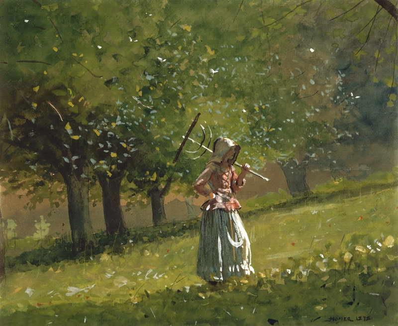 Muchacha con el rastrillo de heno